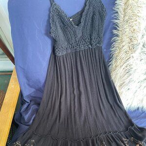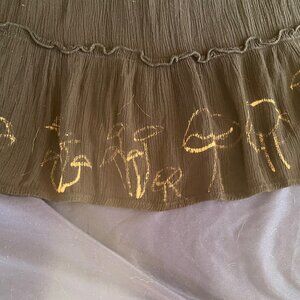 a magical little fariy dress, with bleach painted mushrooms on the hem. the left strap is a little fryed but wont break for a good bit longer.