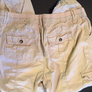 crop, pants, tan, zipper accents, 14 petite