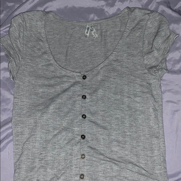 ribbed cropped grey button down