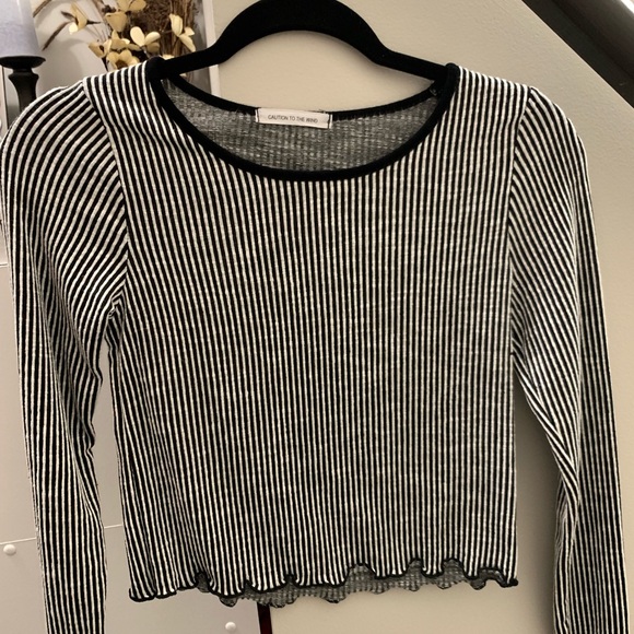 long sleeve, cropped, striped, black & white