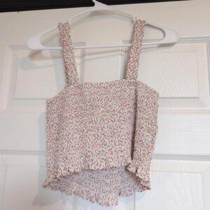 Cropped tank top floral pattern with all over elastic stretchy ruching. New with tags