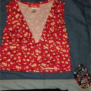 red floral- medium Love letters in silver- xlarge all over print symmetrical hem tube crop top priced for one