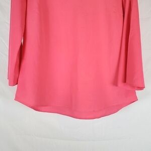 crosby. pink barbiecore cold shoulder top. V-neck. Wide sleeves. Excellent condition. Size 1, equivalent to small.