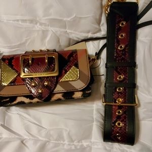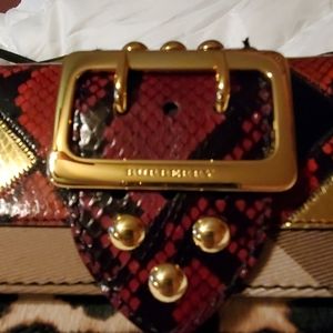 Brand new leather Burberry House Check Patchwork crossbody with goldtone hardware. It has python trim. It includes a flat leather shoulder strap that is 2 1/2 in. wide and the length is adjustable. 3 compartments. 4 card slots in back, middle has zipper and front is single opening. Includes dust bag.