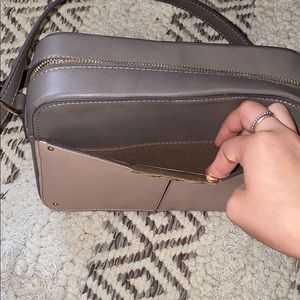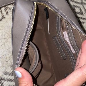 gray and a light tan-cream color crossbody with gold metal (NEVER BEEN USED)