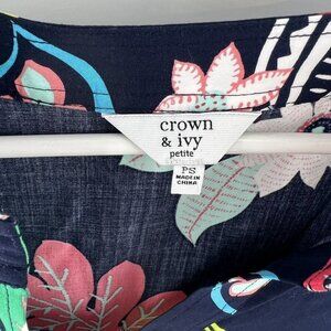 crown & ivy Women's Swing Dress size PS Petite Small Bell Sleeves Floral Parrots