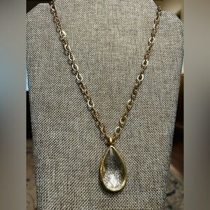 crystal pendant long necklace on gold link chain, versatile, handmade