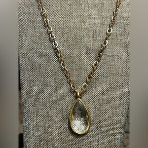 crystal pendant long necklace on gold link necklace, versatile, handmade
