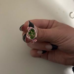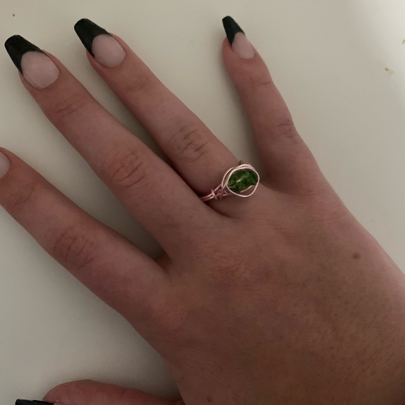 super cute rose gold wire ring with three green crystals in center. super cute and unique!! perfect for any occasion