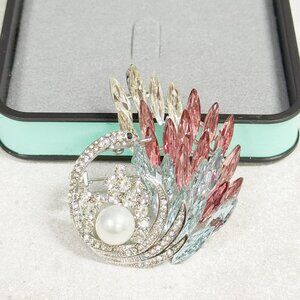 crystal swan brooch, silver brooch, women's brooch, suit brooch, pearl brooch