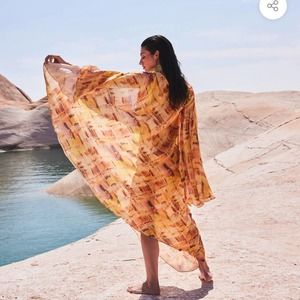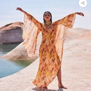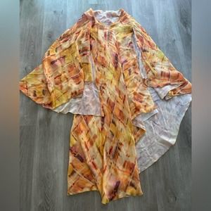 CULT GAIA SHIRA ORANGE ASYMETRICAL DRAPED WIDE DRAMATIC SLEEVES MAXI GOWN SUMMER DRESS