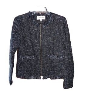 cupcakes and cashmere Fringe Jacquard Tweed zip Jacket Blazer sz S