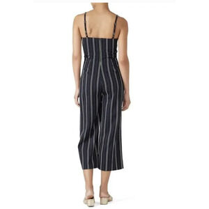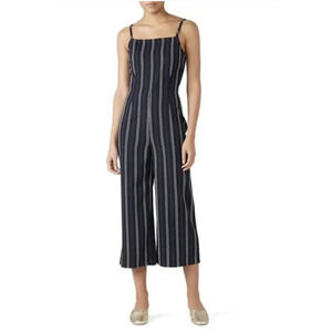 cupcakes and cashmere Jumpsuit Womens 4 Navy Striped Wide Leg Cropped Strappy