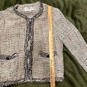 Cupcakes & Cashmere Belicia Fringe Frayed Jacquard Jacket