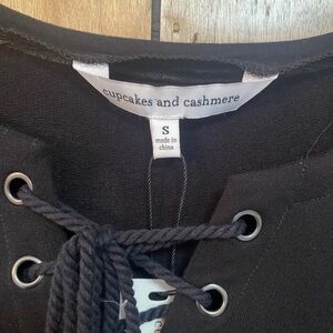 cupcakes & cashmere Black Lace-Up Long Sleeve Dress