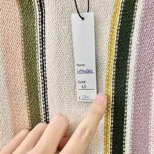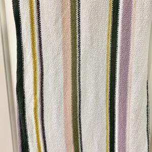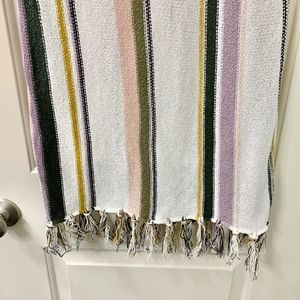 Chic midi dress with vertical stripes. Features fringe hem. Sleeveless design. Perfect for casual outings. Worn once.