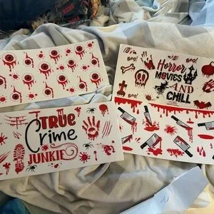 these are stickers that go on glass cups with wooden lids and glass straw. Picture of cups at the end of this slide