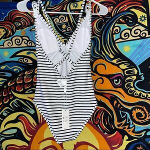 🆕 cupshe nautical inspired one piece cross strap swimsuit sz Small