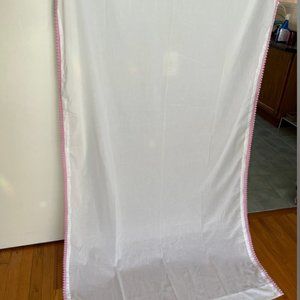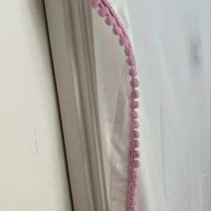 2 pink and white pom pom curtains