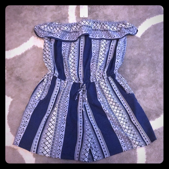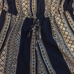Navy and white romper with pockets and tie waist