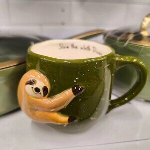cute sloth hug with green coffee mug 18.94oz 596ml