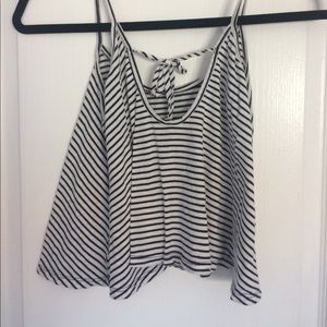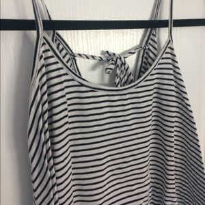 black and white spaghetti strap top with a tie in the back (pictured). in great condition!
