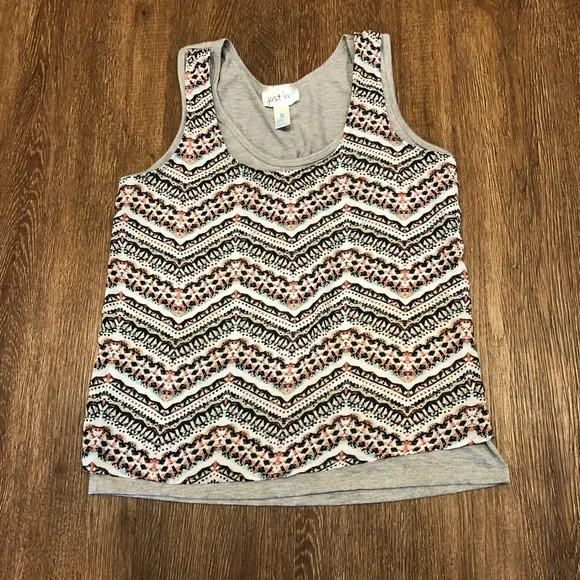 cute grey tank top w patterned sheer layer in good condition size small brand just be bundles are discounted!