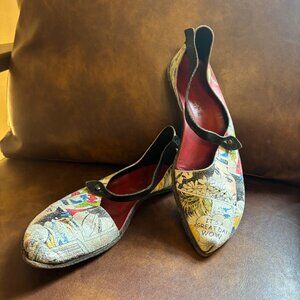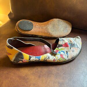These cheeky handmade cydwoq graphic leather flats are in good condition.