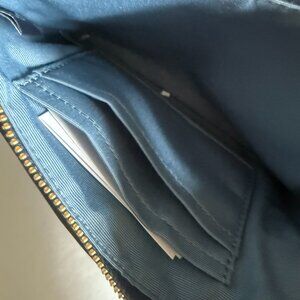 Coach Corner Zip Wristlet in Signature Denim with Cherry Charm