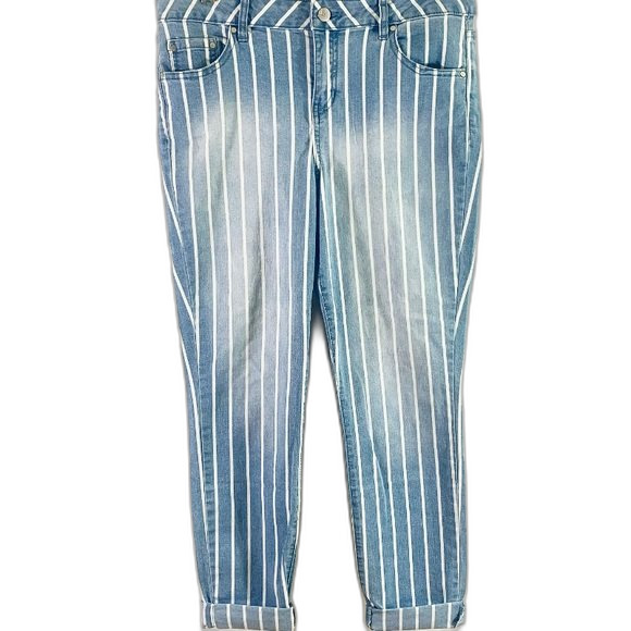 d. JEANS White Pin Striped Cropped Jeans Blue Size 4