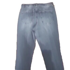 Elevate your denim collection with these D. Jeans Blue AB Technology Tapered Leg Stretch High Rise Denim. This pair of jeans is perfect for any season and occasion, whether it's a casual day out or a night on the town. The jeans are made of a blend of polyester, spandex, and cotton, ensuring maximum comfort and stretch. Featuring a 5-pocket design, elastic waist, and a zipper and button closure, these jeans are both stylish and functional. The solid pattern and blue color make them easy to pair with any top, while the high-rise waist and tapered leg add a touch of sophistication. With a waist size of 32 inches and inseam of 27.5 inches, these jeans are a must-have for any plus-sized woman's wardrobe.