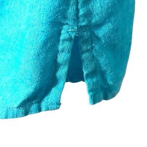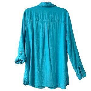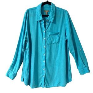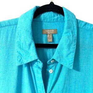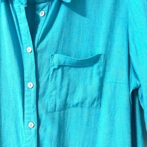 d & co L naturals linen blend aqua blue soft one pocket button down shirt long s
