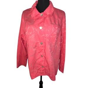 denim & co Ladies 2X iridescent microfiber oyster shell button front long sleeve chest pockets Lightweight cottage core Y2K coral shacket