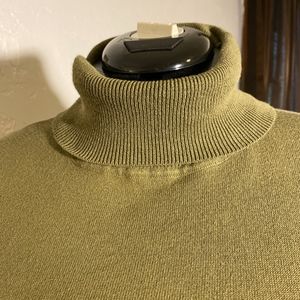 d & co. essentials turtle neck, olive green in color, size 1X. Bust-armpit to armpit around 52 inches, shoulder to shoulder 17 inches, length 26 inches.