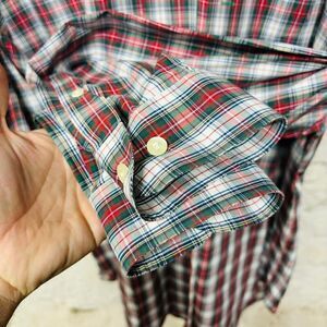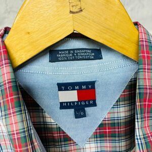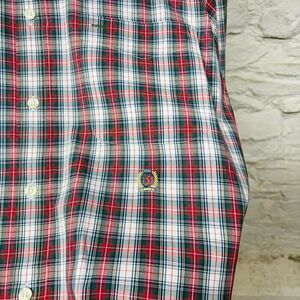 (D19) Vintage 90s Tommy Hilfiger iconic plaid button down shirt with embroidered logo. 100% cotton tagged large, see below for best fit.