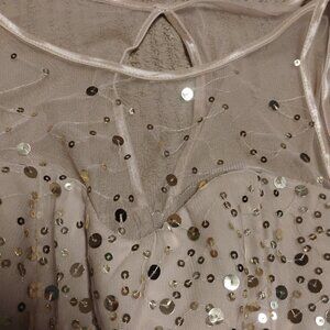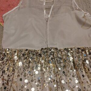 A sparkly dress by dELIA*s! Has beautiful gold sparkles and a sheer top piece. Has a zipper in the back for easy access. In great condition 😊