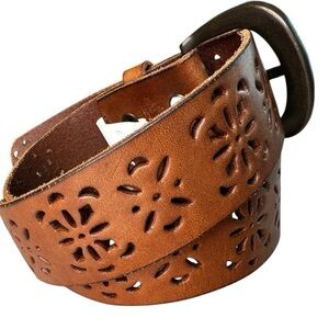 dELiA’s Brown Leather Punched Floral Pattern Brown Leather Belt