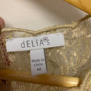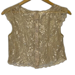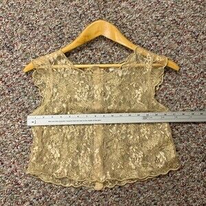 Elegant gold lace crop top. Perfect for layering. Sleeveless design.