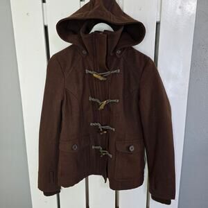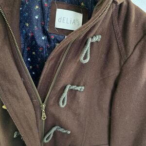 dELiA's Wool Blend Brown Hooded Zip Toggle Coat M Bella Swan Y2K Norm Thinsulate