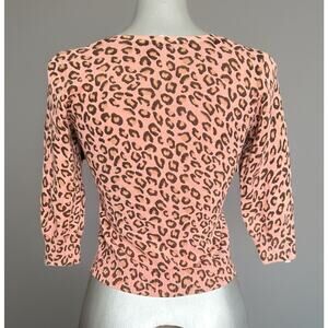 dELiA*s Y2K Leopard Animal Print Cropped Cardigan Sweater Medium Pink Brown