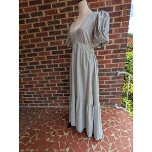 dRA Los Angeles Carol Dress-Grey/White-Maxi-Puff Sleeve-Cottagecore- Small NWT
