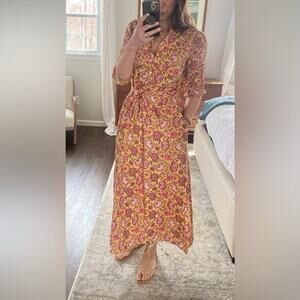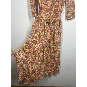 dRA Los Angeles Floral Block Print Maxi Dress Medium Tie Waist Anthropologie