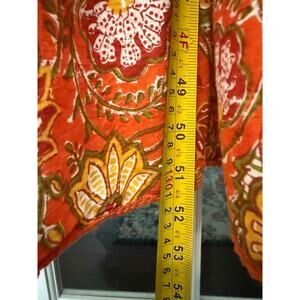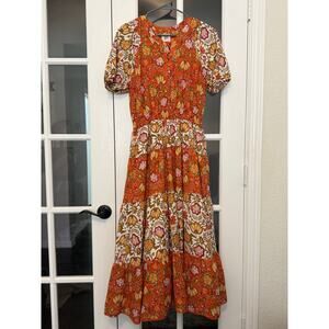 dRA Los Angeles Floral Tiered Midi Dress Smocked Waist Puff-Sleeve Orange Large