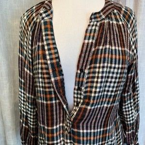 dRA Los Angeles Plaid Henley tunic blouse top Women's XS