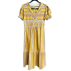 dRA Puff Sleeve Striped Lace-trim Fit and Flare Midi Dress Yellow Women's Small