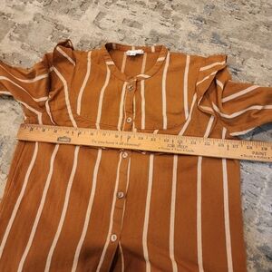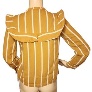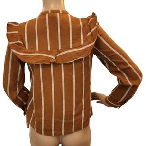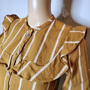 dRA linen/cotton mustard yellow/brown long sleeve blouse.