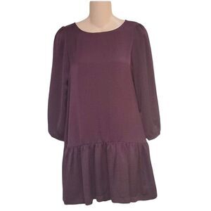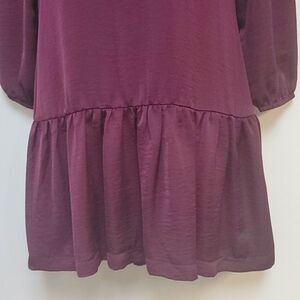 Burgundy d.RA Tunic 3/4" Sleeve Dress XS. Button back closure with ruffle at hem.