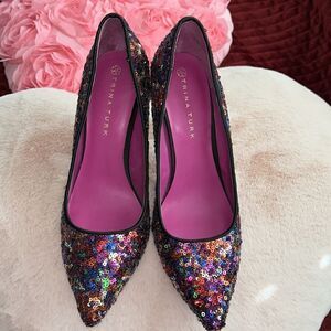 Trina Turk Show stop 🛑 ing heels 👠 carefully cleaned and sanitized with Lysol wipes 4” heals stored individually sealed. See pictures for colors condition and measurements