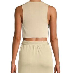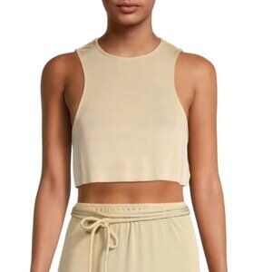 Supersoft rib-knit tank in a cropped length. Roundneck. Sleeveless. Pullover style. Polyester/cotton. Machine wash.