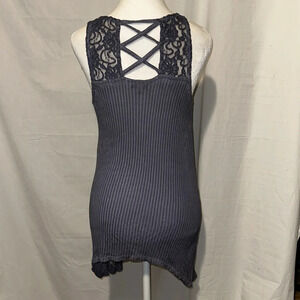 dark dusty blue floral lace & strappy sleeveless Knox Rose asymmetrical top size xs